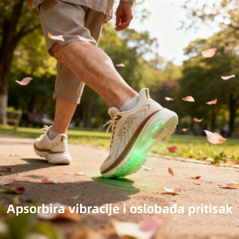 Ergonomski potplati: Blago zakrivljeni dizajn pomaže u pomicanju stopala prema naprijed uz minimalno pomicanje zglobova i povećava fleksibilnost hoda.